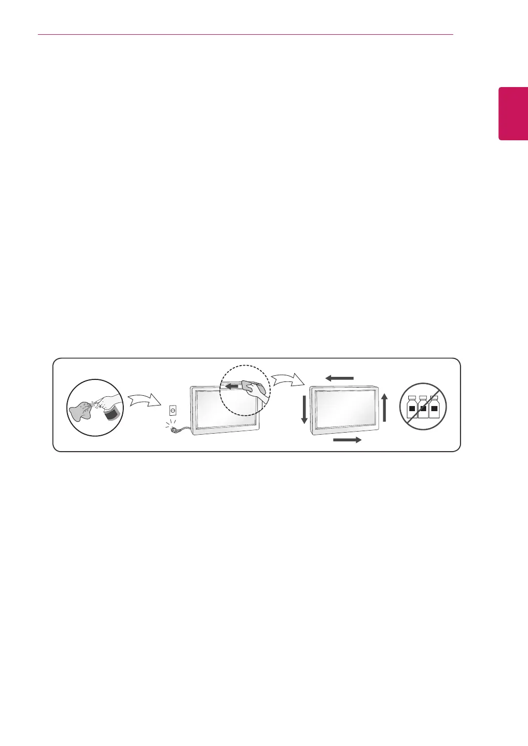 • 清洁产品时,拔出电源线,并使用柔软的布轻轻擦拭以防止刮坏。 不要用湿布清洁,也不要将水或