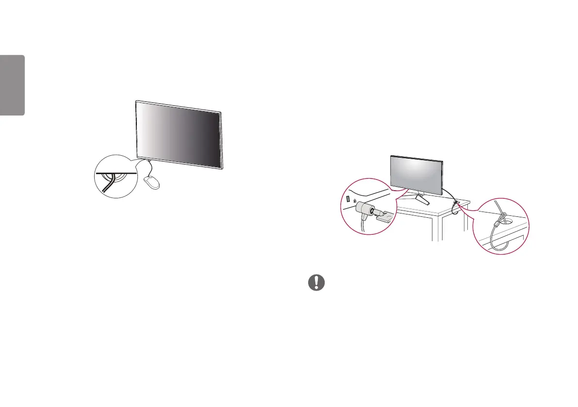 Bevestig de monitor aan een tafel met de kabel van het Kensington-
