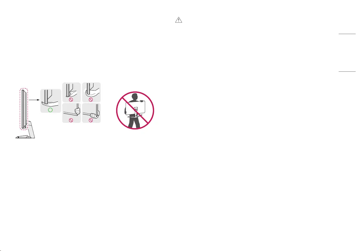 • Hold the bottom and side of the monitor frame firmly. Do not hold the panel itself.
