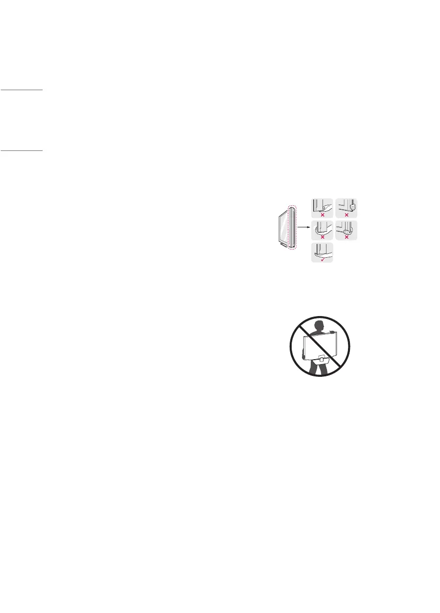 y Hold the top and bottom of the TV frame rmly. Make sure not to