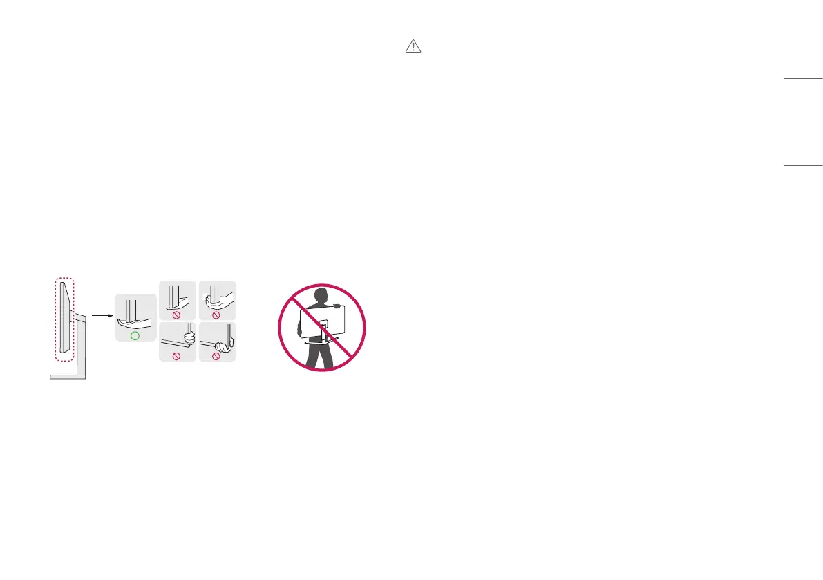 • Houd de onder- en zijkant van de monitor stevig vast. Houd de monitor niet bij het scherm zelf vast.