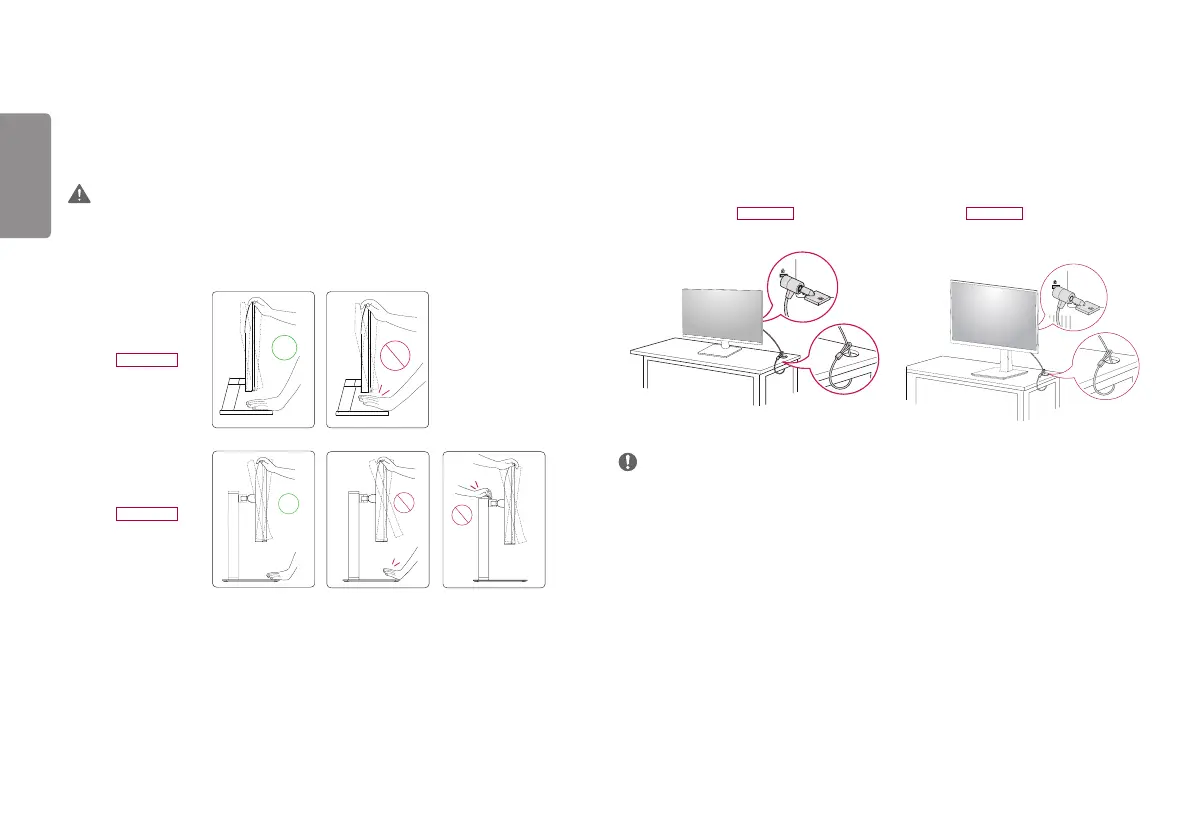 • Raak het scherm niet aan en druk er niet op wanneer u de kijkhoek van de monitor aanpast.