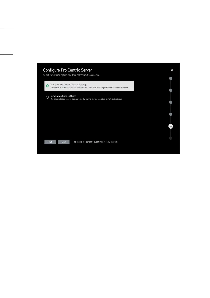 • Standard Pro:Centric Server Settings : Default Automatic / Manual Pro:Centric Server Configuration