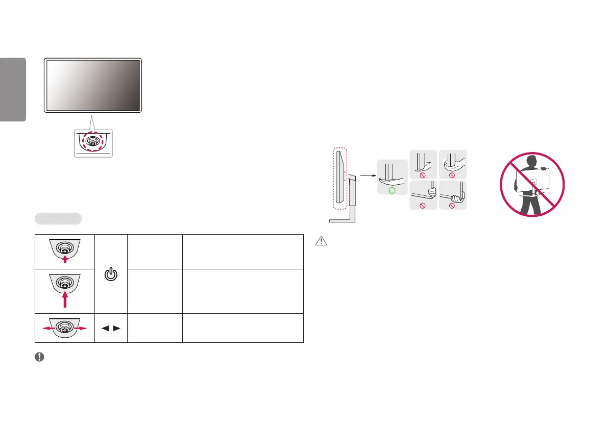 • If you use the monitor panel without the stand base, its joystick button may cause the monitor to become