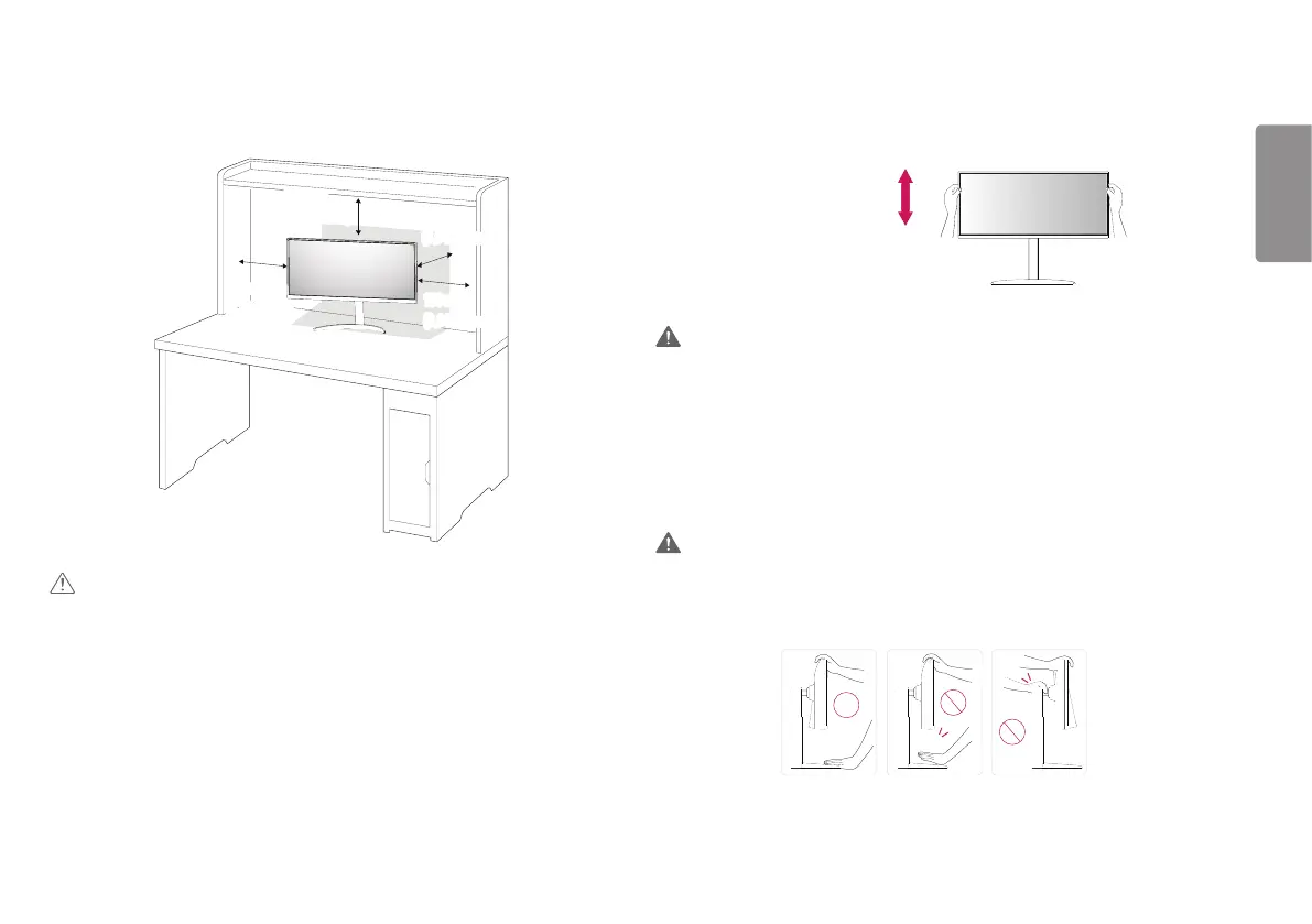 • When adjusting the screen height, do not place your hand on the stand body to avoid injury to your fingers.
