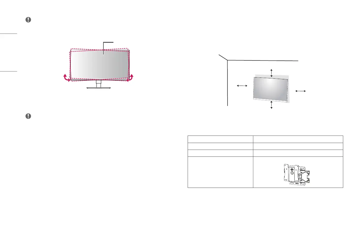 Install the monitor at least 100mm (3.9inches) away from the wall and leave about 100mm (3.9inches)