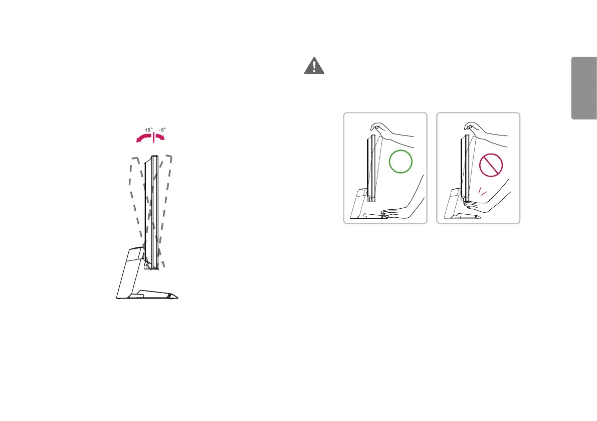 • Be careful not to touch or press the screen area when adjusting the angle of the