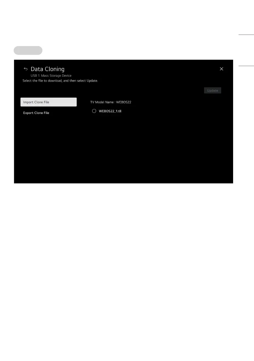 clone (.tll) file located in the root directory of the USB memory device. The user should not turn TV off nor unplug the USB device while processing.