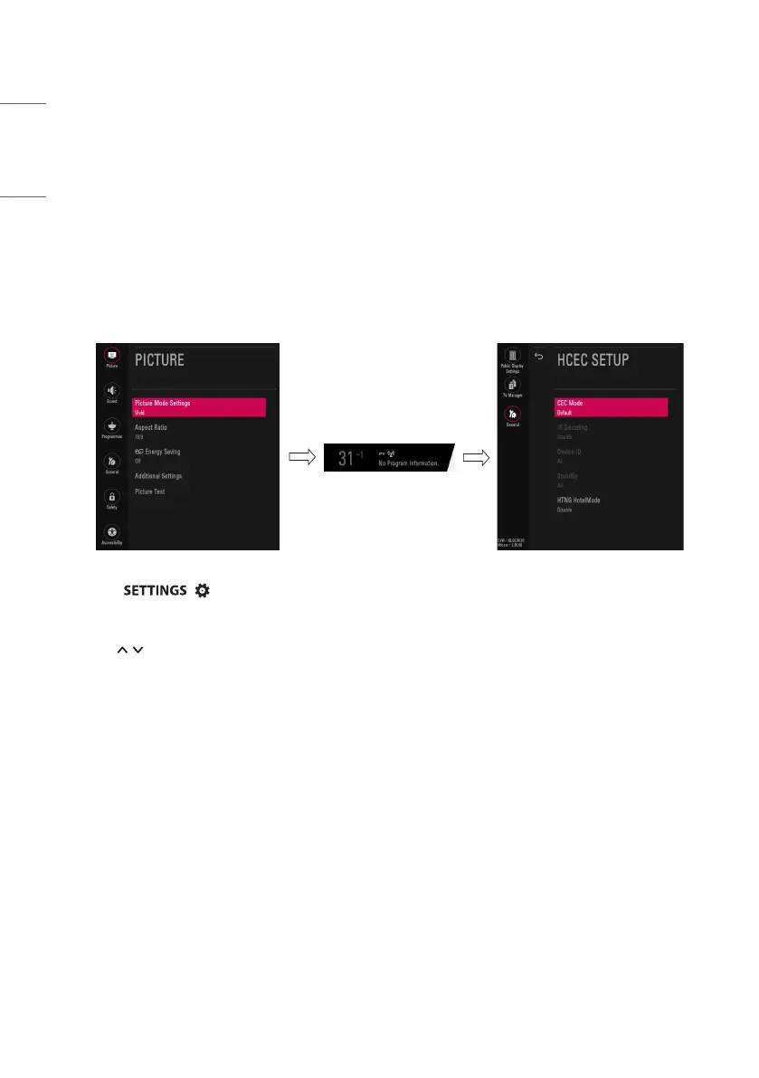 1 Press the / (Settings) button for more than 5 seconds using the user remote control, Programme information will appear at