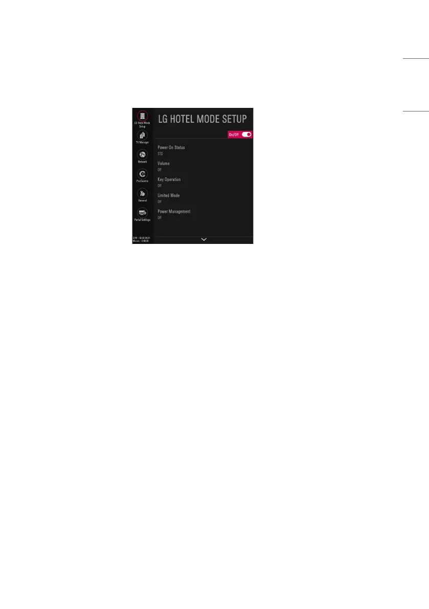 • When LG Hotel Mode Setup is set to On(Work), all functions of Hotel Mode apply.
