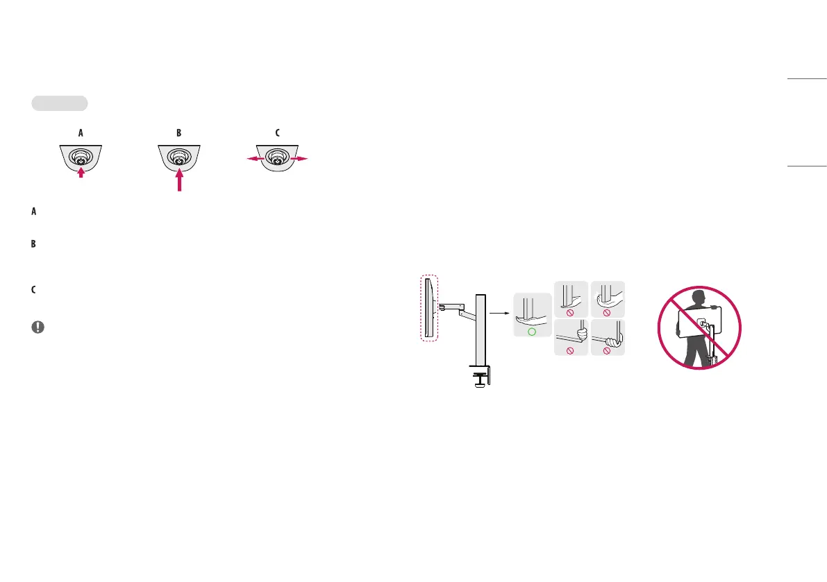 • Houd de onder- en zijkant van de monitor stevig vast. Houd de monitor niet bij het scherm zelf vast.