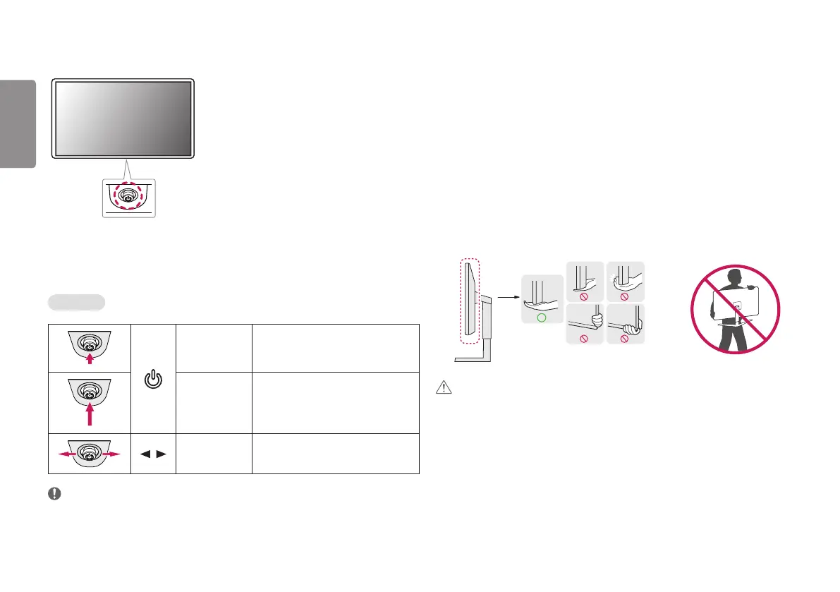 • Als u het monitorpaneel gebruikt zonder de basis van de standaard, kan de joystickknop ervoor zorgen dat de
