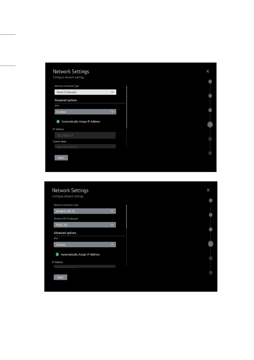 • If you intend to set network, use the Network Settings option. You can connect easily to wired/wireless network by this option. (“Network Settings” on