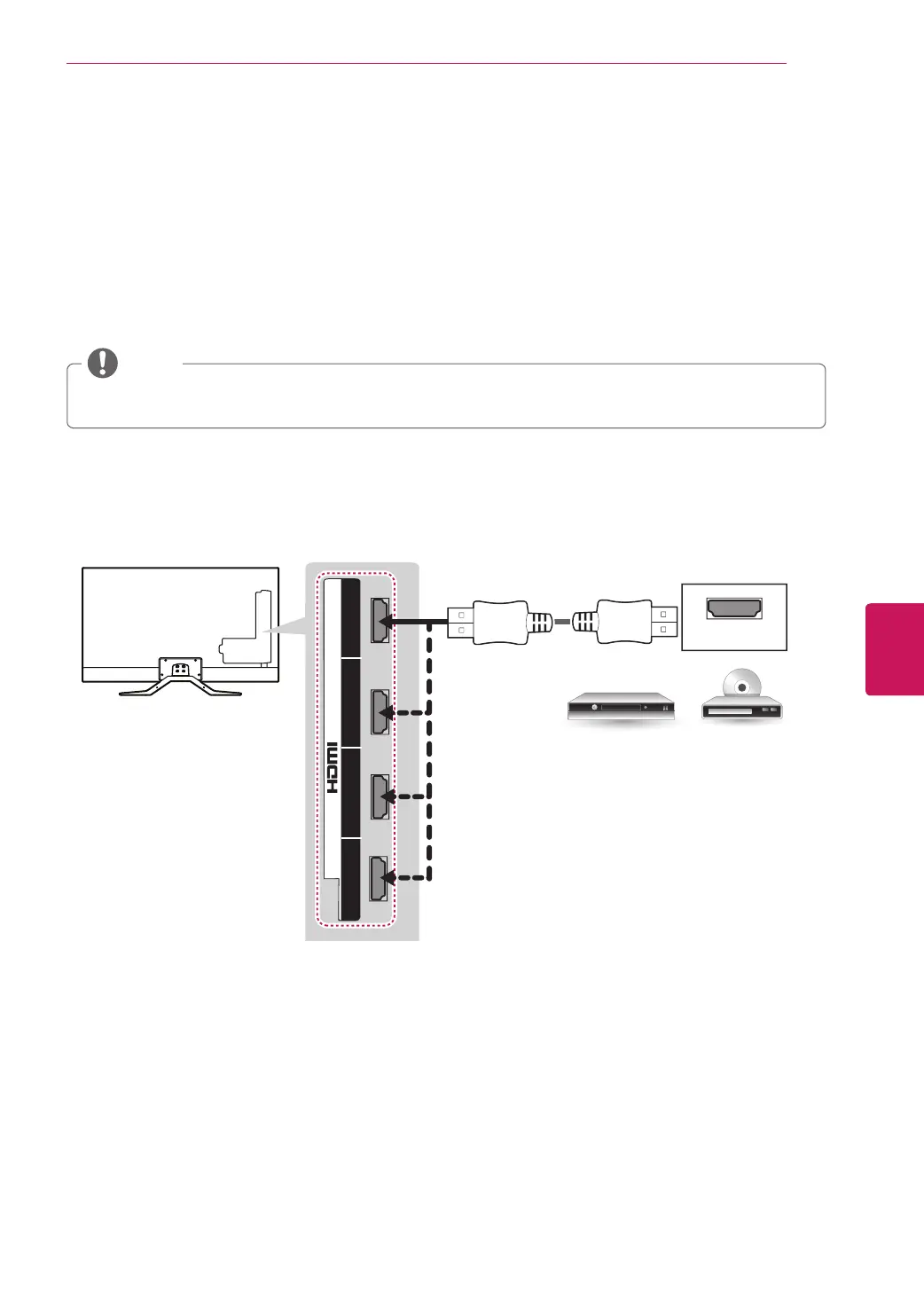 Transmits digital video and audio signals from an external device to the TV. Connect the external device and the TV with