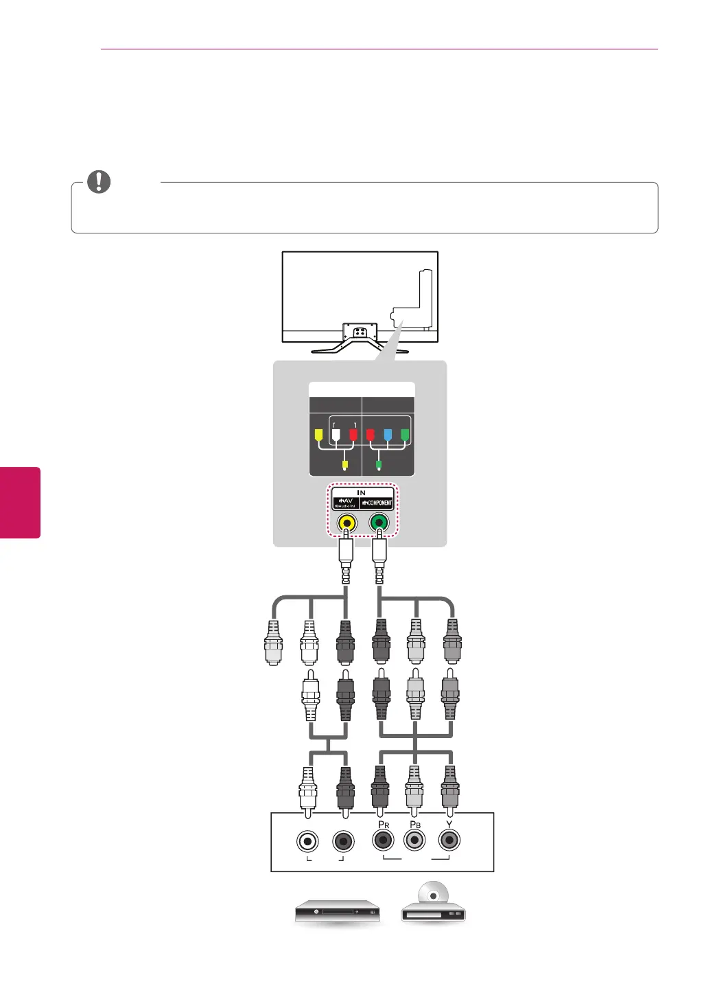 Transmits analog video and audio signals from an external device to the TV. Connect the external device and the TV with