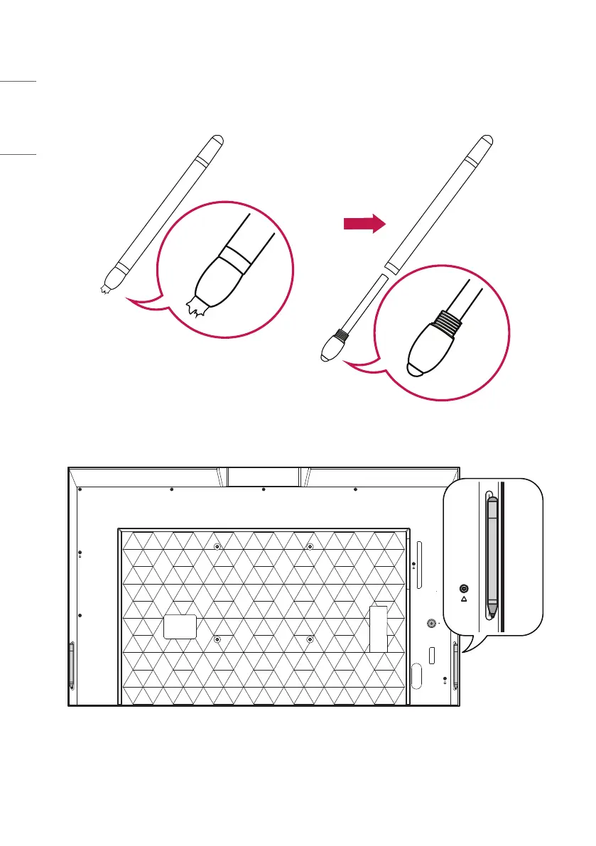 When the tip of the touch pen is damaged as shown in the figure, replace it with a tip provided as an accessory.