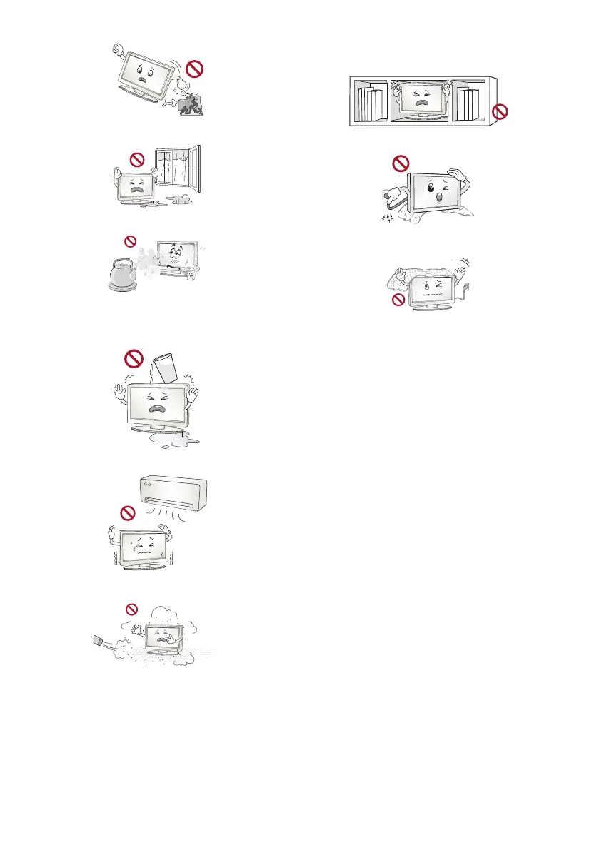 • Do not let your children climb or cling onto the TV. Otherwise, the TV may