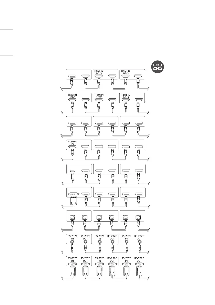 To use multiple products connected to each other, connect one end of the signal input cable to the HDMI/DP Out