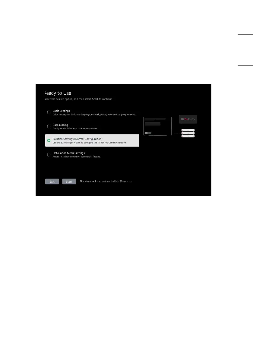 • There are four options - Basic Settings, Data Cloning, Solution Settings, and Installation Menu Settings. Each menu can access by Start
