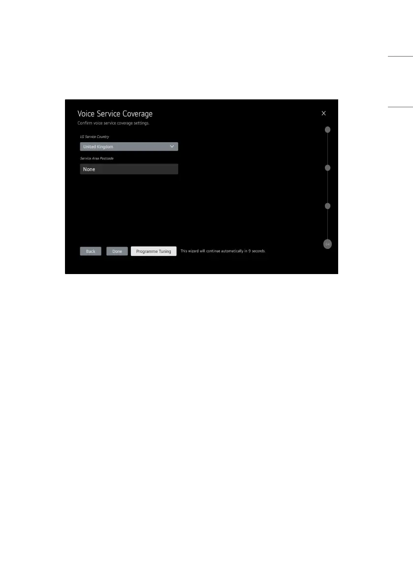 Set the voice service coverage. You can set LG Service Country and Service Area Postcode(Depending on model) for voice service.