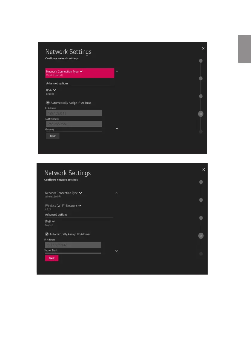 • If you intend to set network, use the Network Settings option. You can connect easily to wired/wireless network by this option. (”Network” on