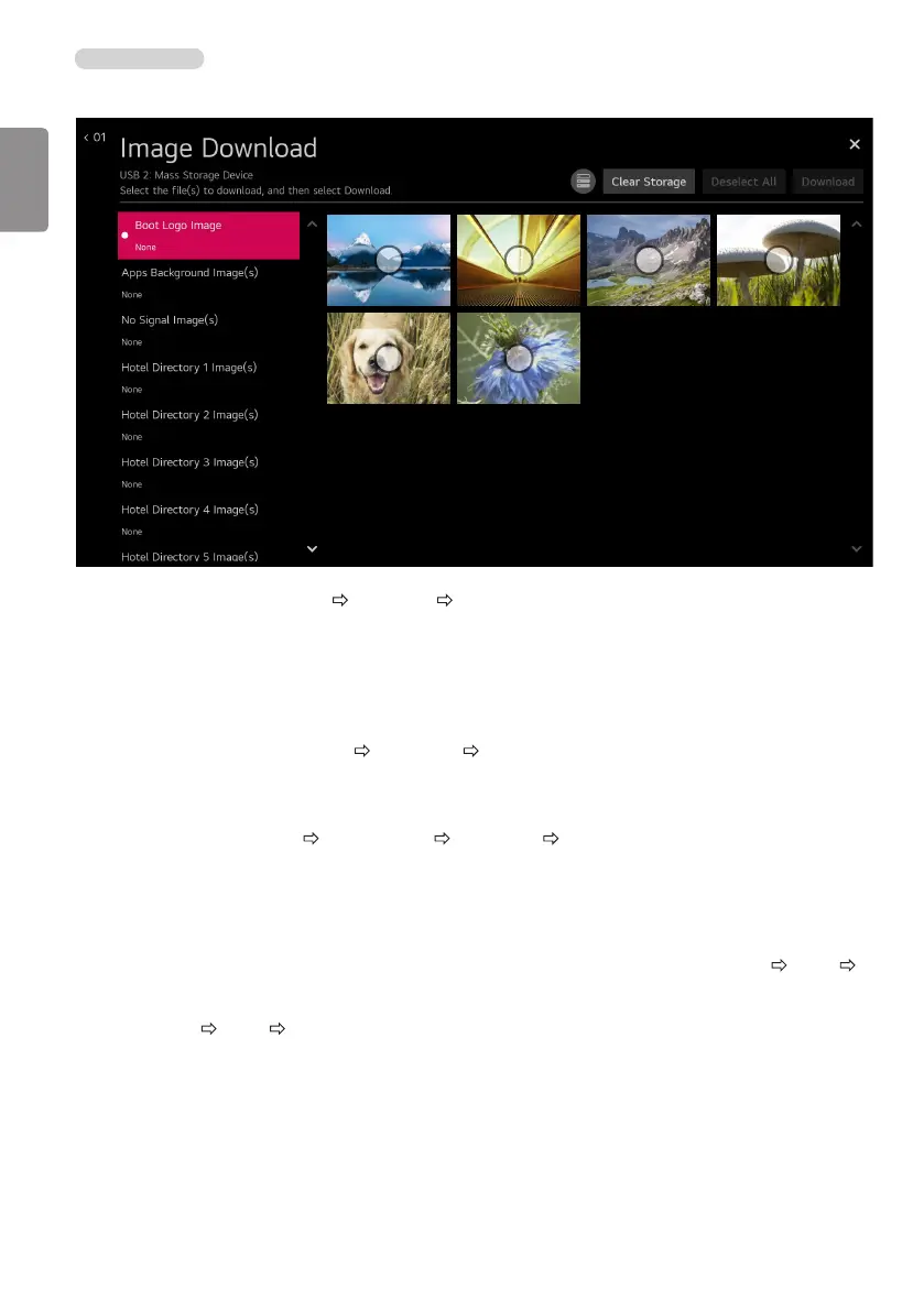 Apps Background Image(s), No Signal Image(s), Hotel Directory Image(s) (Depending on model)