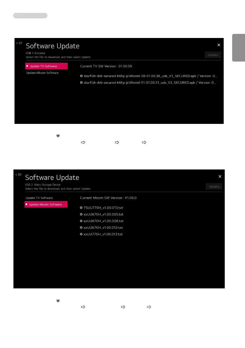 • The download sequence is Software Update Update TV Software Select le(EPK) UPDATE.