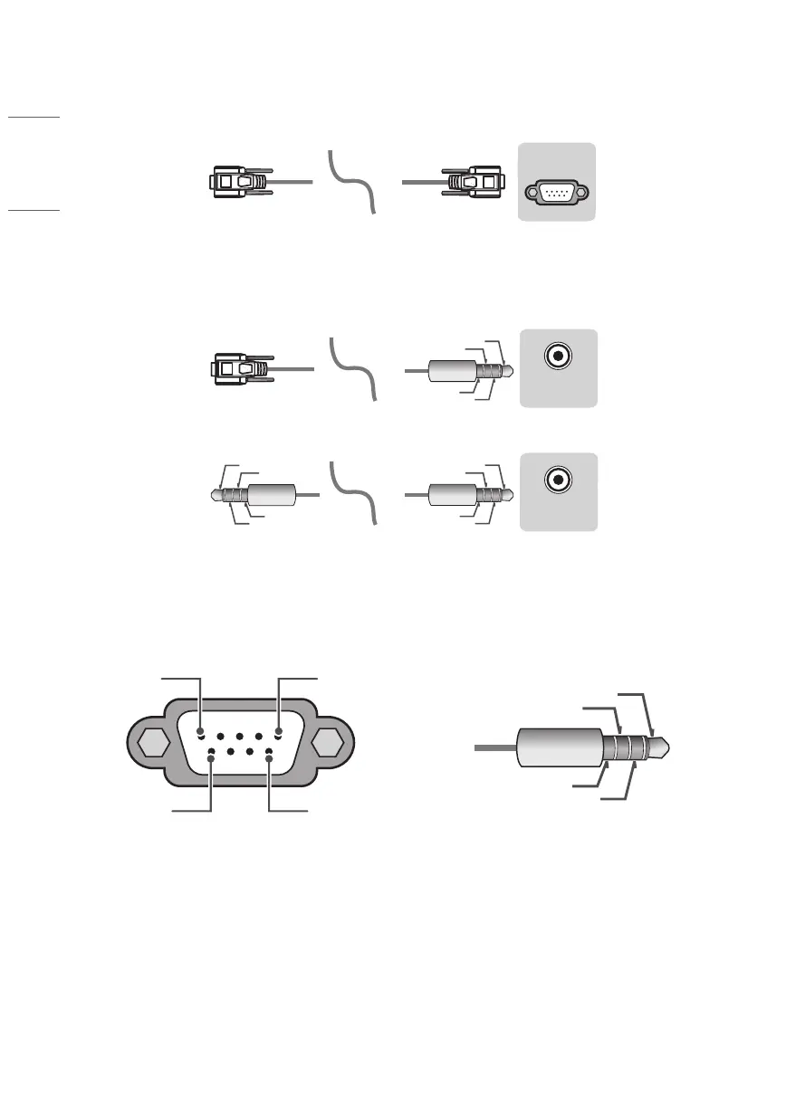 • You need to purchase the phone-jack to RS-232C cable required for the connection between the PC and the TV,