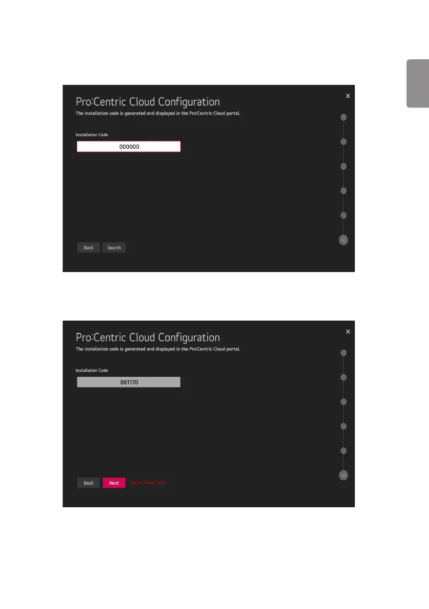 From the Pro:Centric Cloud setting screen, You can input the installation code that issued from Pro:Centric Cloud server.