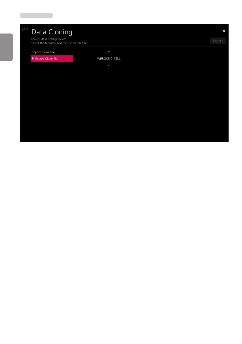• “Export Clone File” creates “TLL” le in USB root folder. “TLL” le can be used to “Import Clone File”. While writing is in process, the user must not