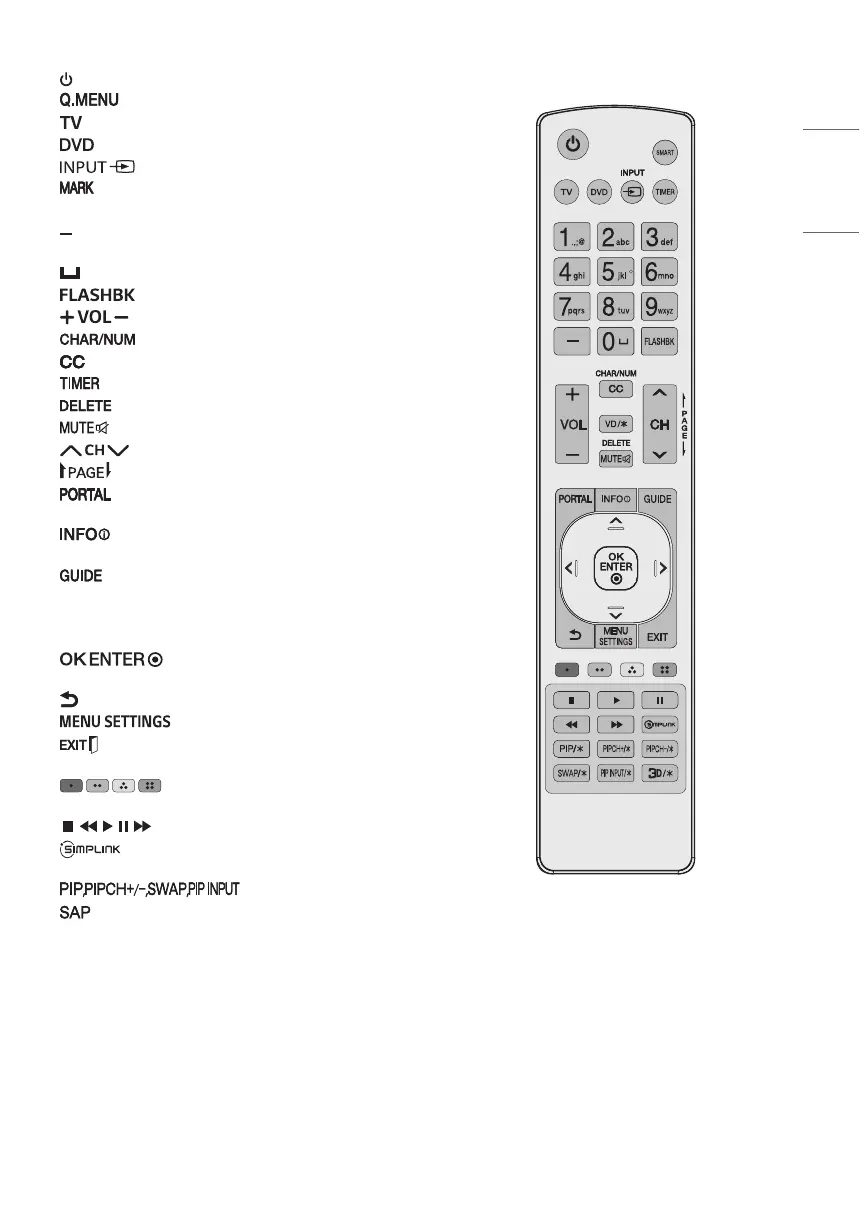 (Power) Turns the TV on or off.