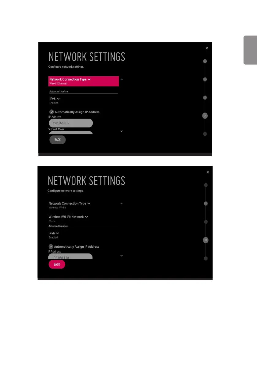 • If you intend to set network, use the Network Settings option. You can connect easily to wired/wireless network by this option. (“Network