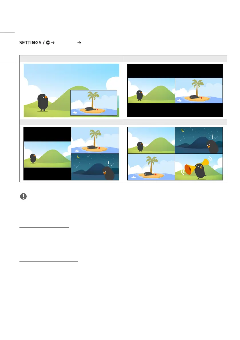 This feature allows you to view multiple external inputs and videos on a single screen.