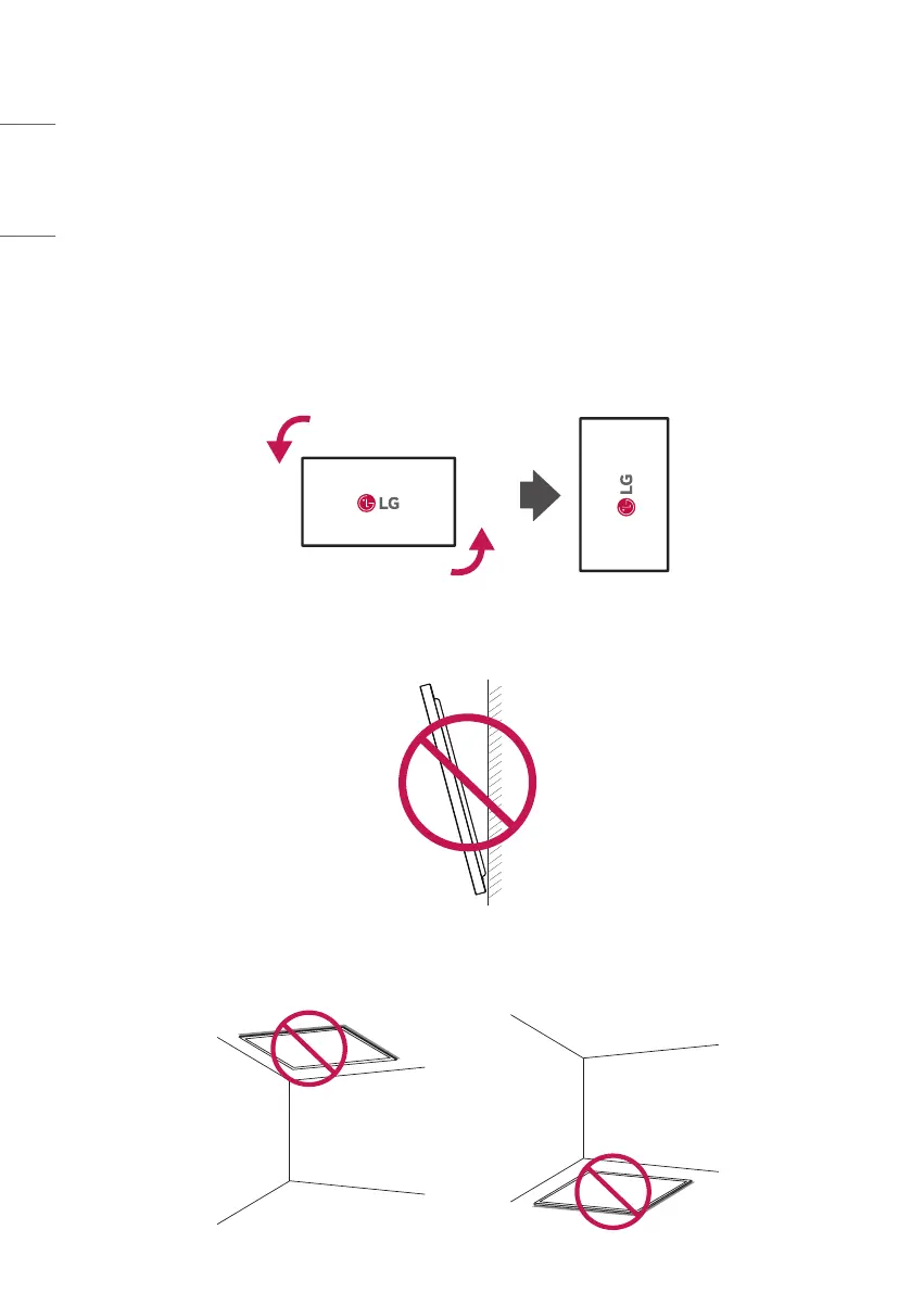 When installing vertically, rotate the monitor 90 degrees anti-clockwise while facing the front of the