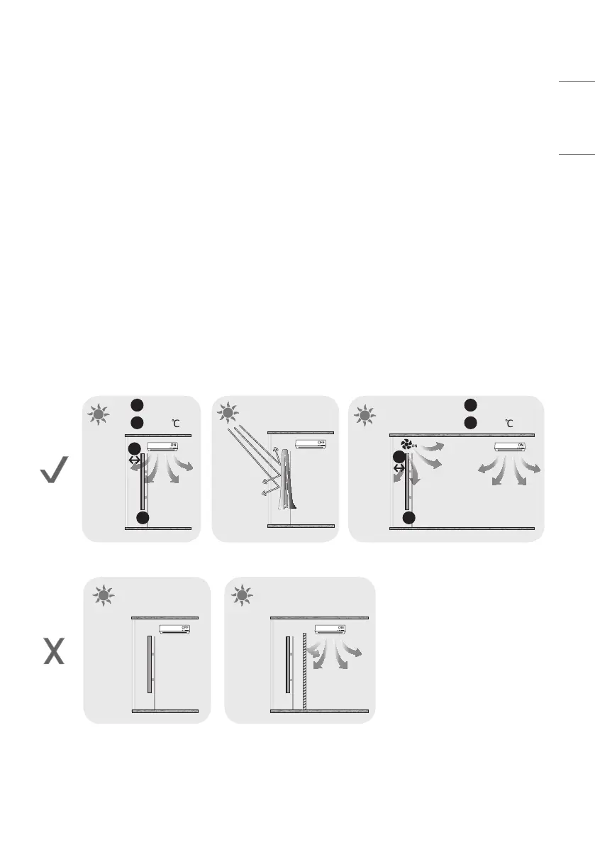 • Make sure to keep sufficient space between the product and the window glass. (100 mm or more)