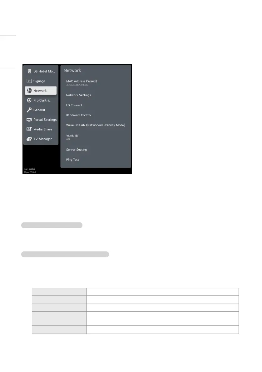 2 When connecting via Wired, Congures the IP settings of the TV set. You can set the IP address, subnet mask, gateway and DNS server.