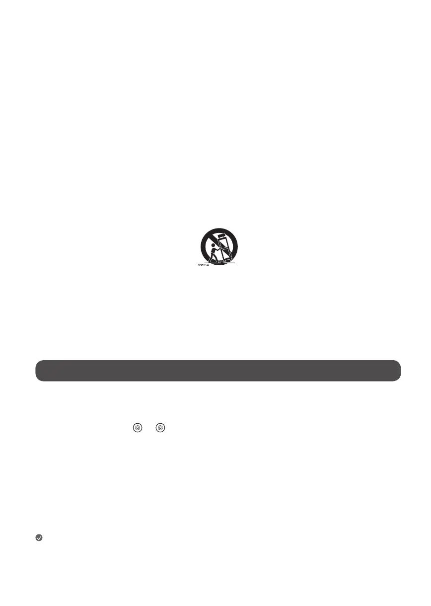 • Utilisez uniquement avec un chariot, un socle, un trépied ou une table recommandé par le fabricant ou vendu avec l’appareil. Si vous déplacez l’appareil à