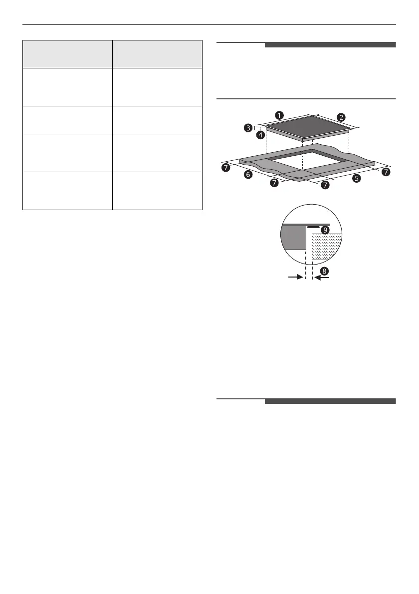 • The safety distance between the sides of the hob