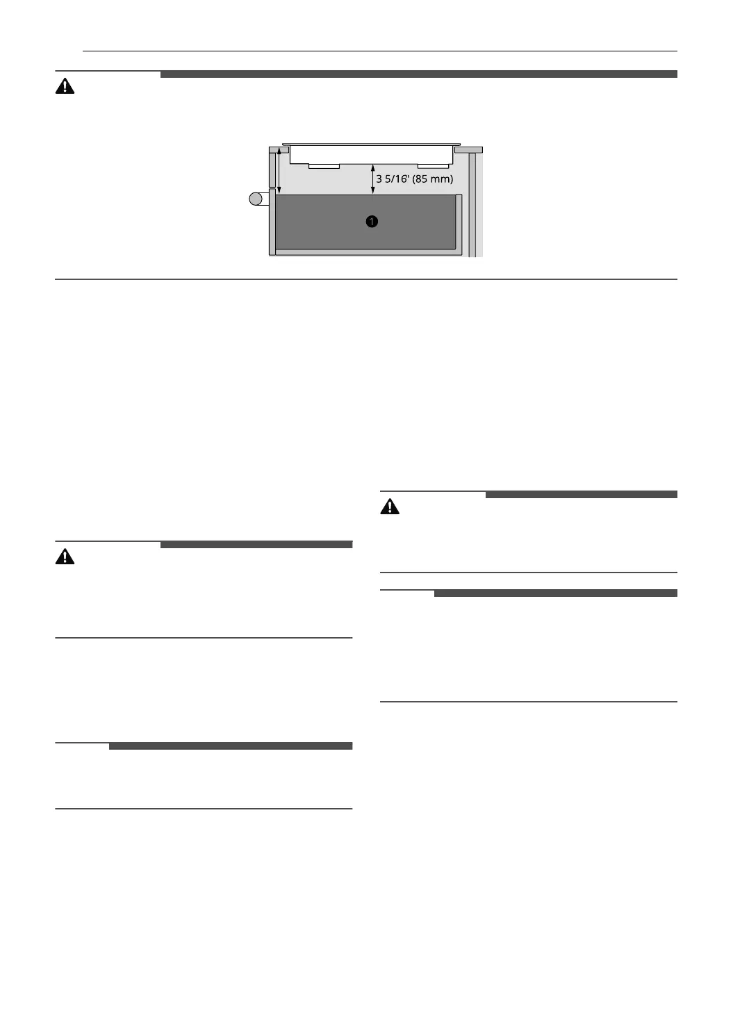 • It is very important to keep 3 5/16" (85 mm) distance between the cooktop and a drawer or oven a