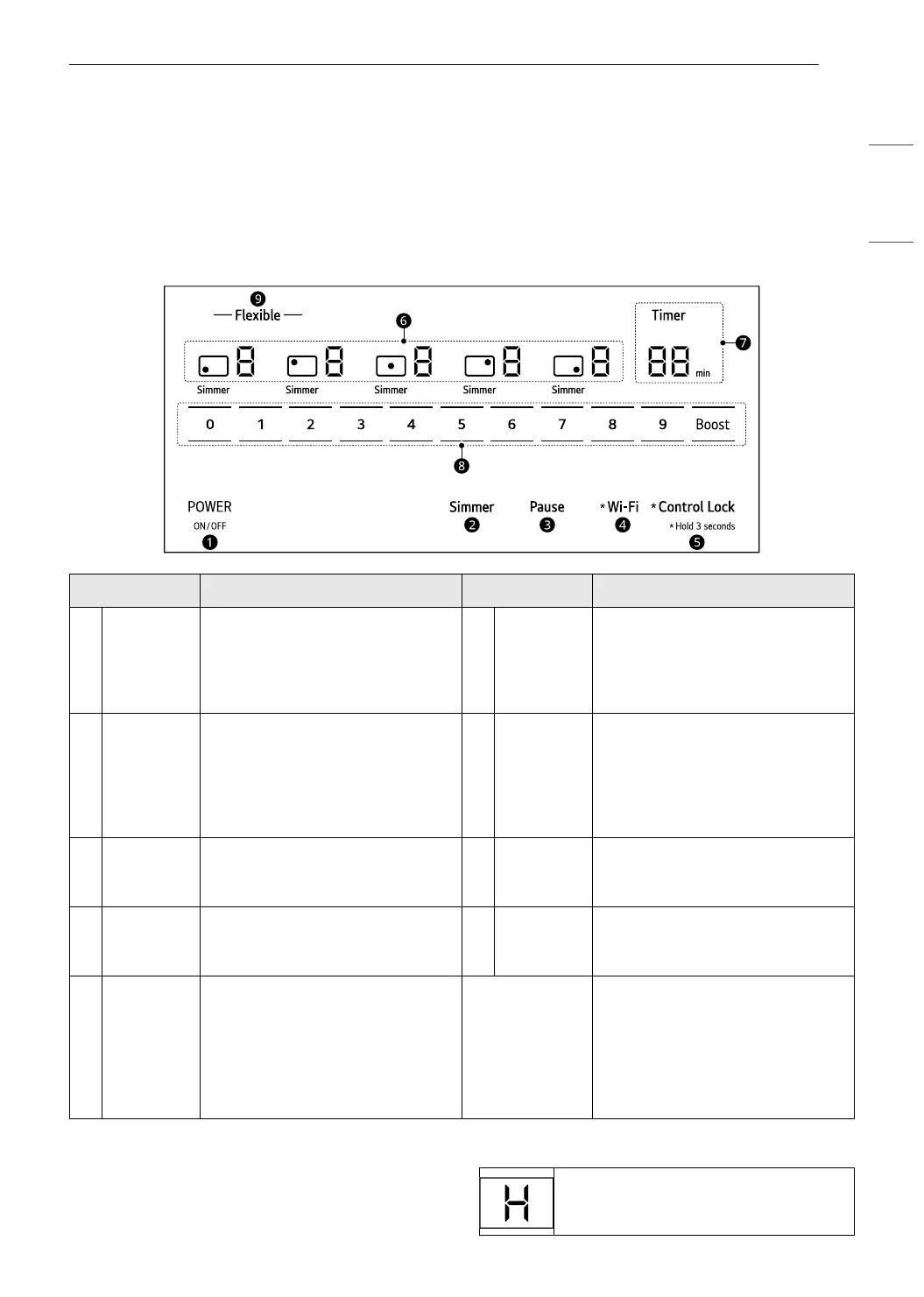 The position of the cooking zone being controlled is shown in each cooking zone icon on the control panel.