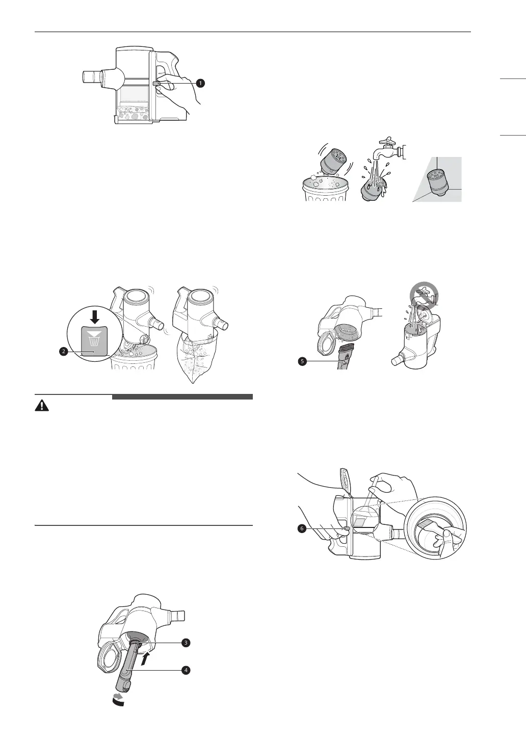 5 Wash the cyclonic mesh filter under running