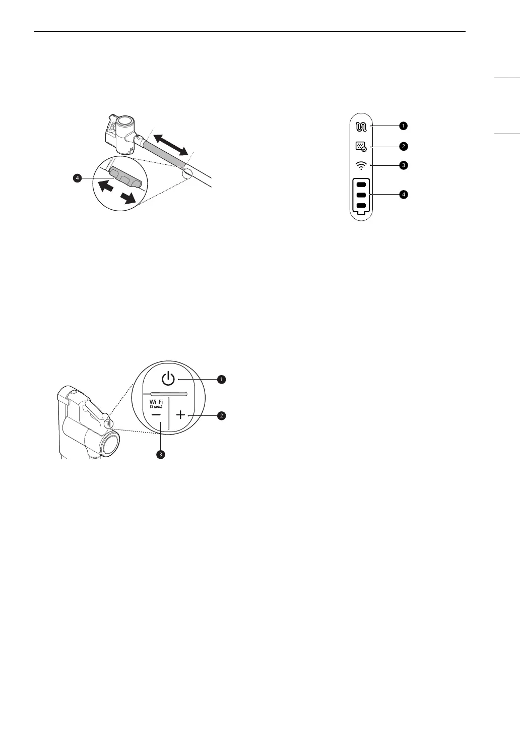 3 Adjust the extension pipe by pressing the