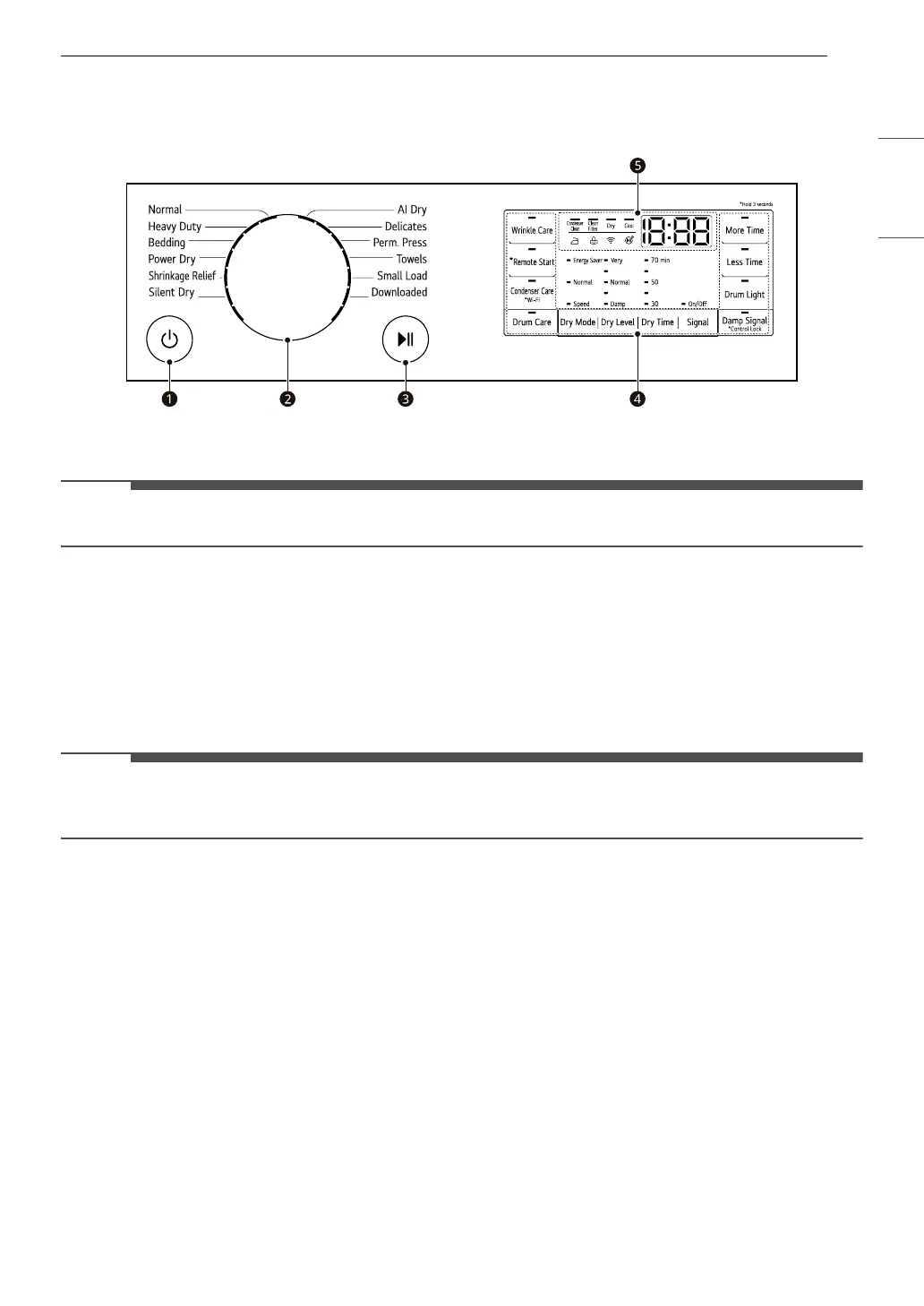 presets will be shown in the display. On Manual Dry cycles, these settings can be adjusted using the