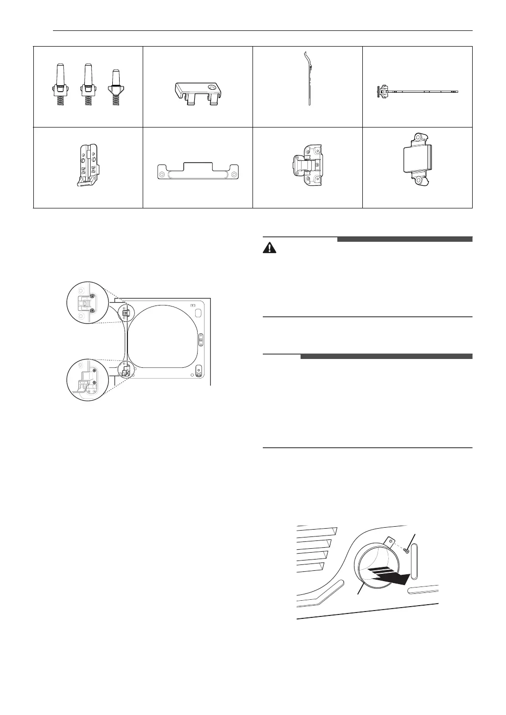 d Interlock buttons e Lower hinge filler f Side lock rod g Upper hinge assembly
