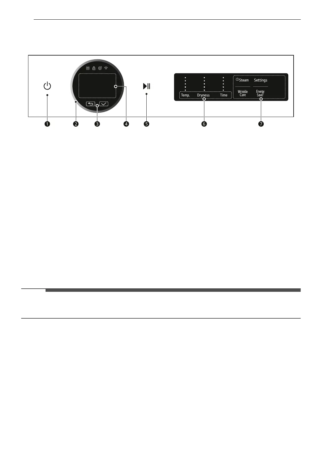 • Use these buttons to adjust the dry temperature, dryness and time settings for the selected cycle.