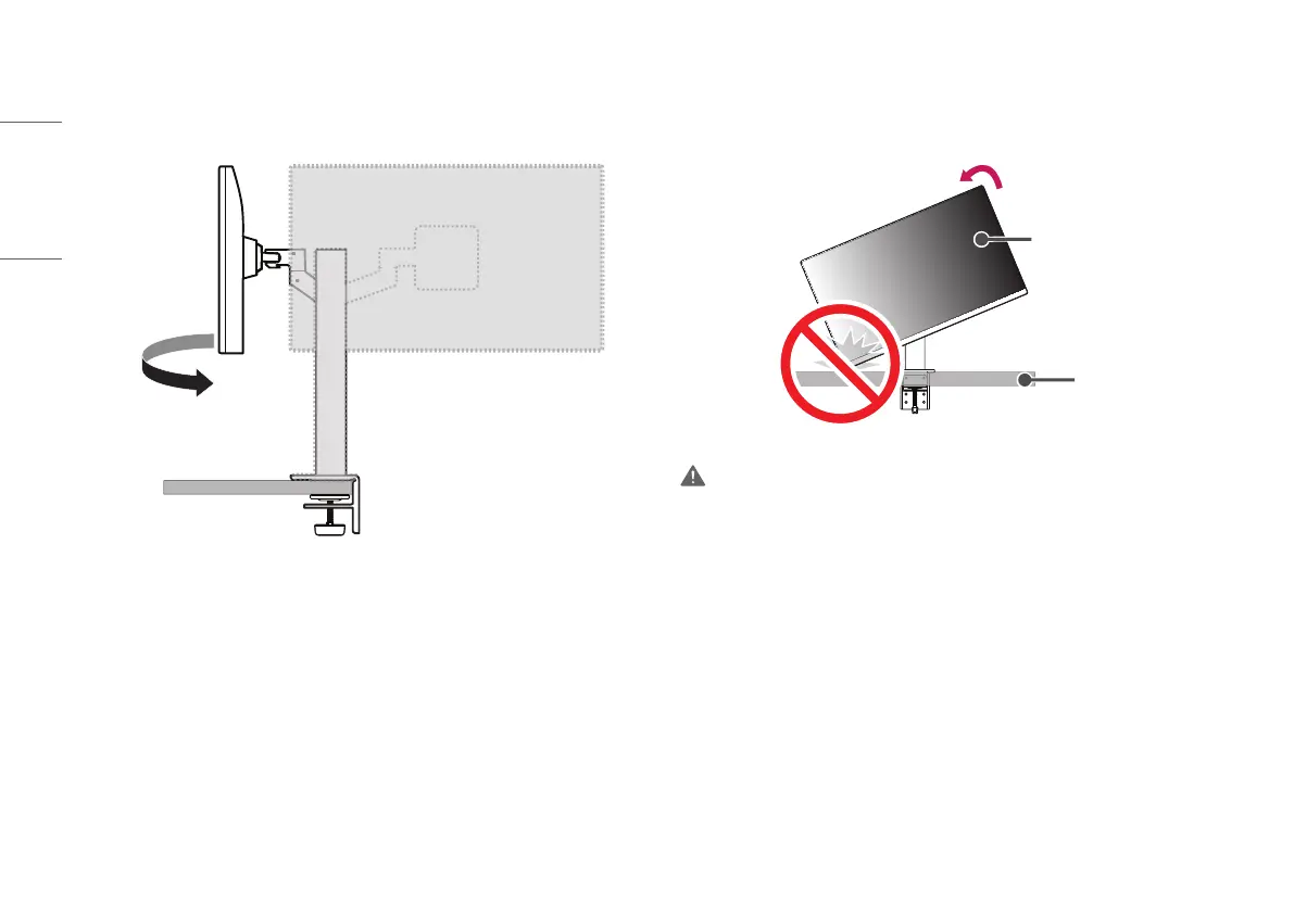 • When using the Pivot function, do not rotate the monitor too fast or with excessive force. The table may be