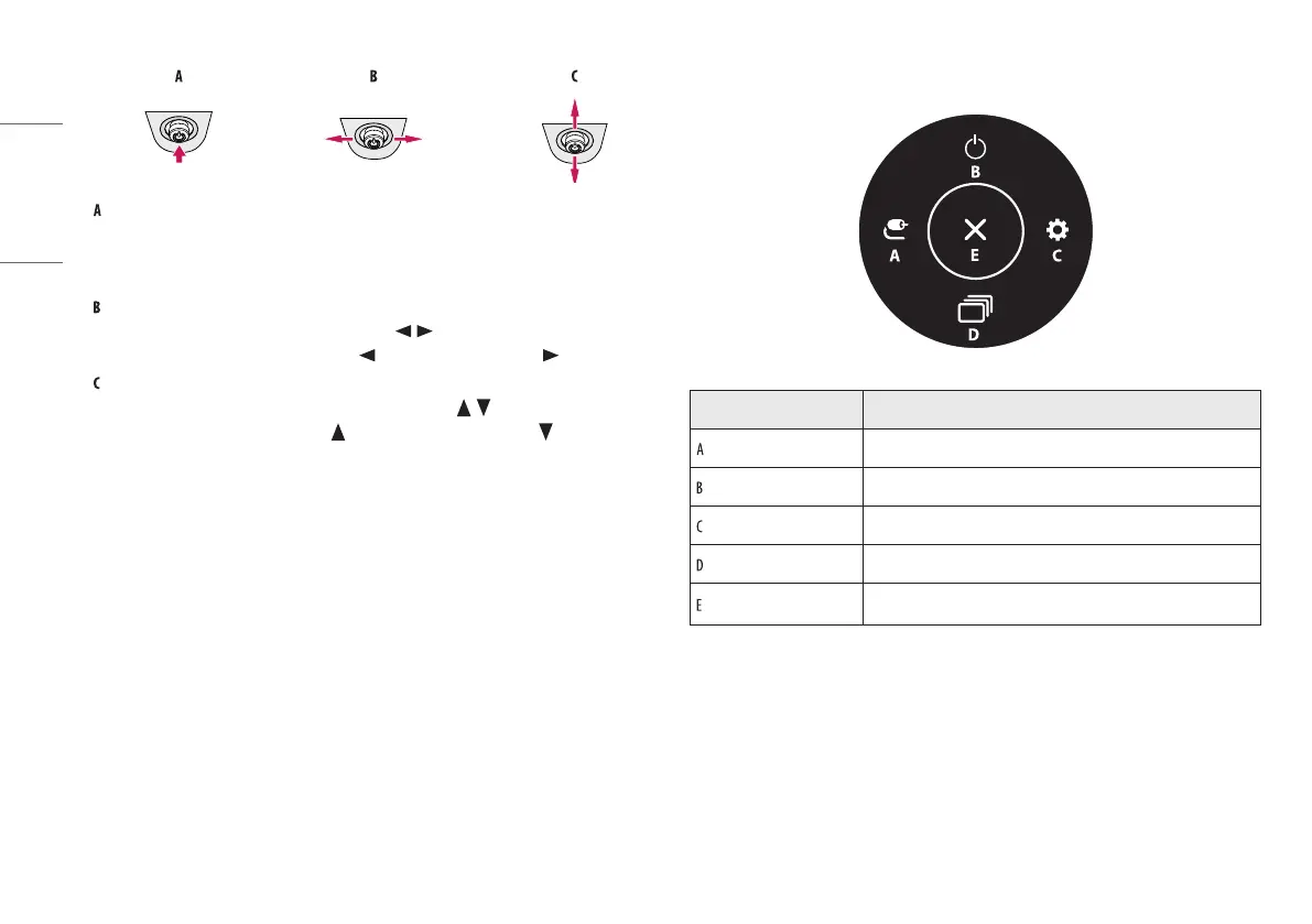 • Main menu enabled: Turns off the monitor. ( ) / Enters the [Picture Mode] feature. ( )