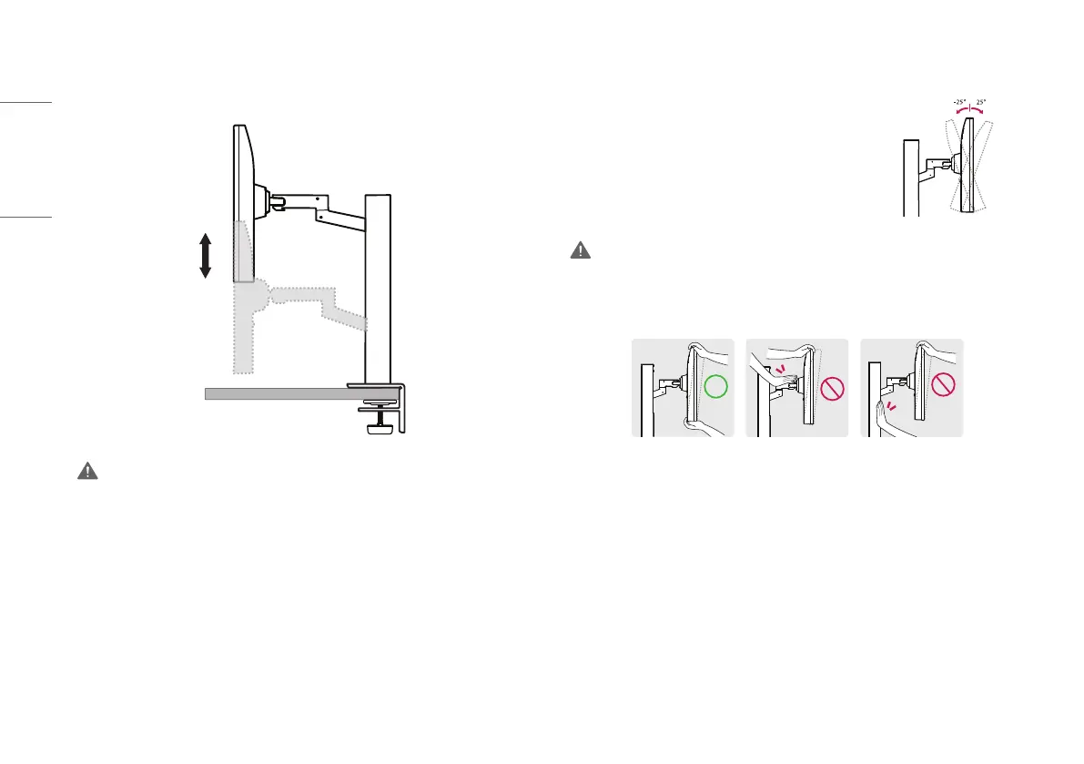 • Raak het scherm niet aan en druk er niet op wanneer u de kijkhoek van de monitor aanpast.