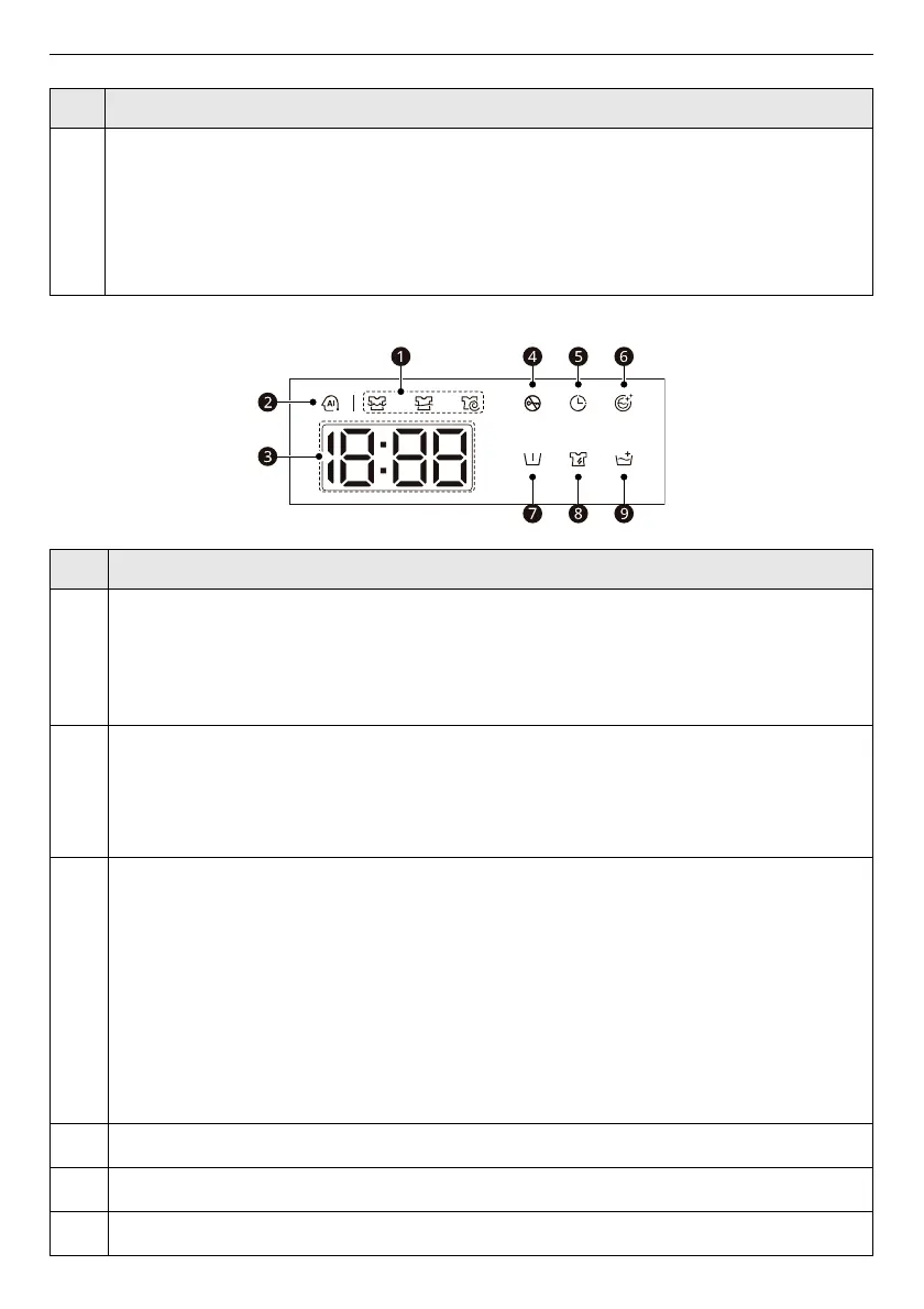 • Wanneer er een wasprogramma loopt, zal de LED voor de actieve fase knipperen, en de LED's