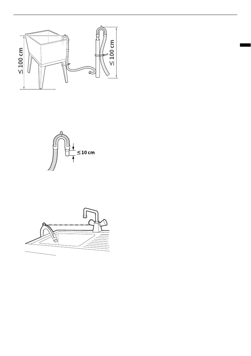 • Zorg ervoor dat de afvoerslang niet meer dan
